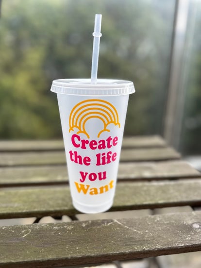 Reusable large tumbler for your cold drinks like lemonade, iced teas, smoothies, and why not cocktails🍹. They have a wide opening - perfect for adding ice, easy to clean– and a narrower base. feature a leak-proof lid with a straw